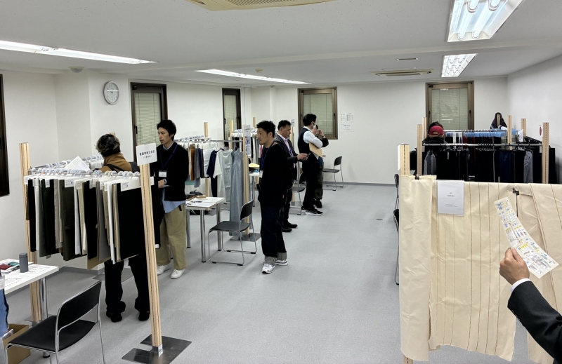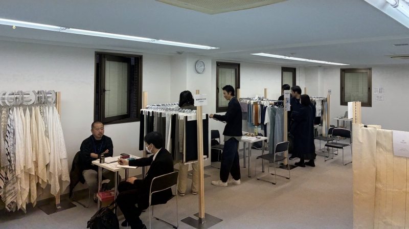 出展者は、遠孫織布、杉岡織布、橘織物、東洋織布、本庄織布、ミツノブ、宮田織物の(50音順)の7社で、特徴のある素材を提案し、落ち着いた商談が行われた。